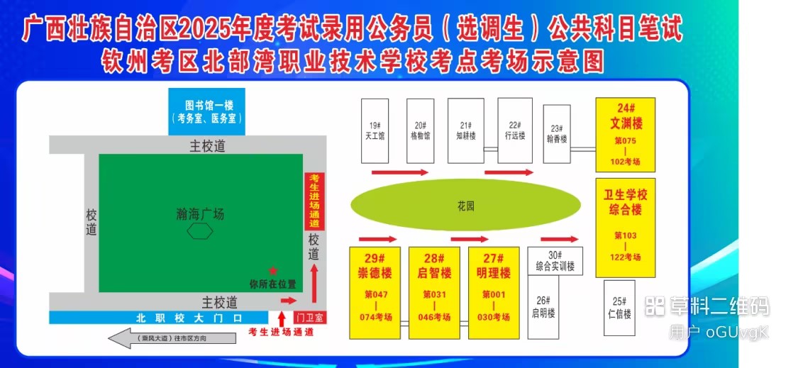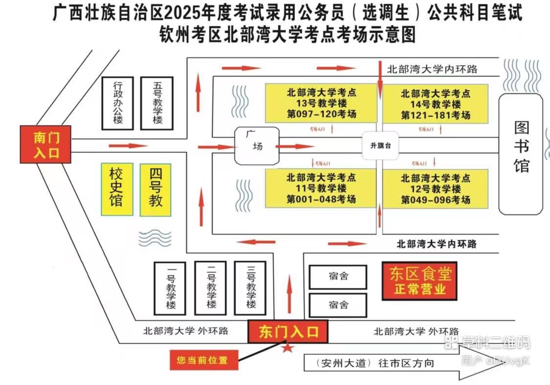 欽州考區(qū)共設(shè)兩個(gè)考點(diǎn),分別為北部灣大學(xué)考點(diǎn)、北部灣職業(yè)技術(shù)學(xué)校考點(diǎn)。(考點(diǎn)地址和具體考場(chǎng)安排請(qǐng)掃附后的二維碼查看)