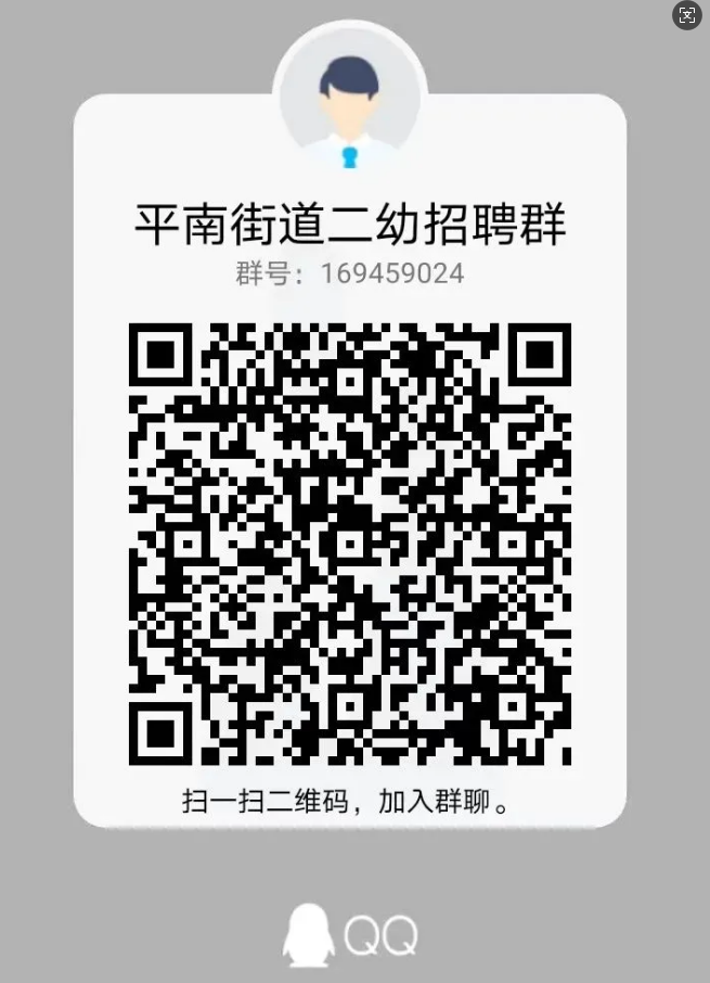 有意向者可以掃碼進入平南街道二幼招聘群咨詢,入群請備注姓名。