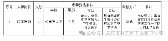 2.報(bào)名地點(diǎn):來賓市興賓區(qū)五山鎮(zhèn)衛(wèi)生院辦公室。