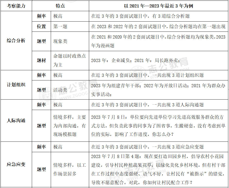 貴港事業(yè)單位面試主要采用結(jié)構(gòu)化面試形式;審題時間:2分鐘;答題時間:12分鐘;考查題量:4題為主。考務(wù)情況:考官不讀題、統(tǒng)一計時、超時會提醒。考查題型:綜合分析(極高)、計劃組織(極高)、人際溝通(極高)、應(yīng)急應(yīng)變(較高)、貫徹執(zhí)行(較高)、自我認知(一般)。