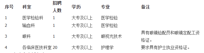 根據(jù)業(yè)務(wù)發(fā)展需要,現(xiàn)決定對外公開招聘合同制檢驗師、驗光師和護理人員若干名,勞務(wù)派遣到賀州市人民醫(yī)院從事輔助性崗位工作。凡有意向且符合報名條件者均可報名應(yīng)聘,具體條件及招聘辦法如下: