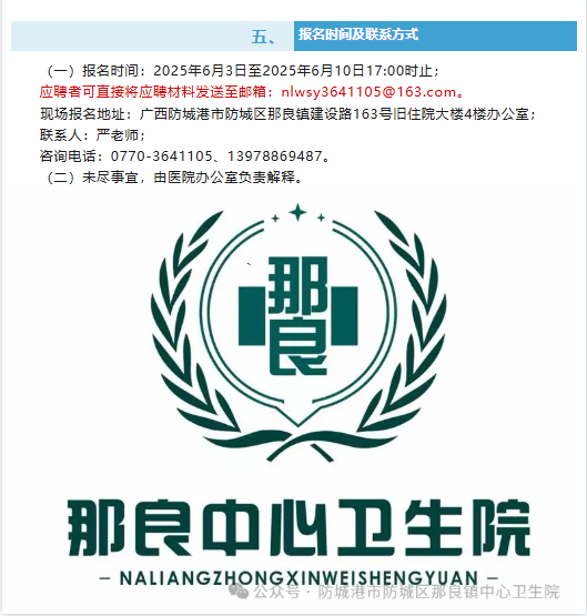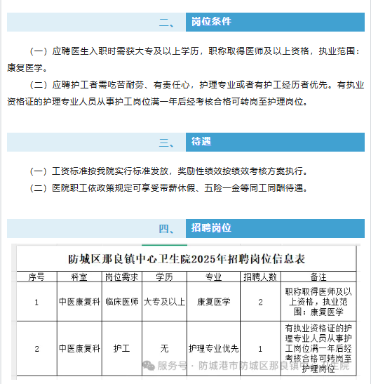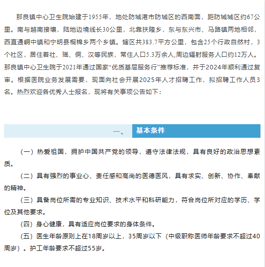 原文標(biāo)題:招醫(yī)生、護(hù)工啦!防城區(qū)那良鎮(zhèn)中心衛(wèi)生院“職”等你來