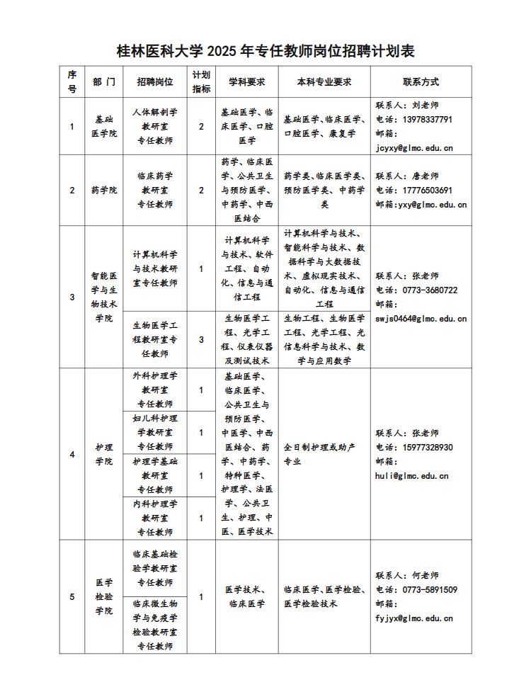(二)各部門聯(lián)系方式見:桂林醫(yī)科大學(xué)各崗位招聘計(jì)劃表。