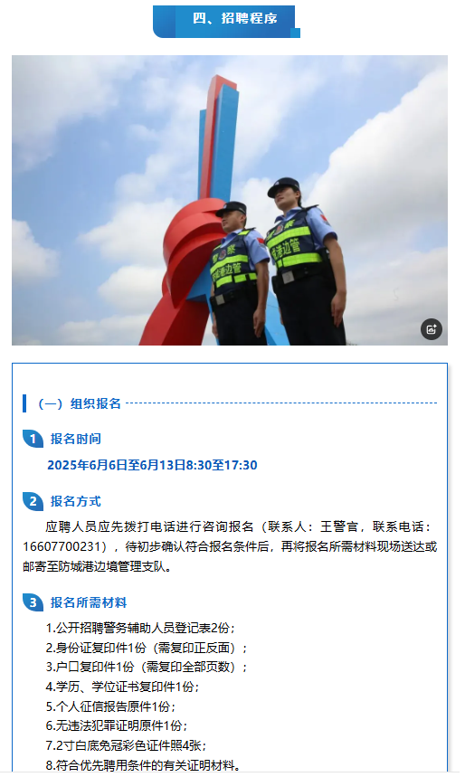 防城港邊境管理支隊(duì)公開招聘警務(wù)輔助人員40人