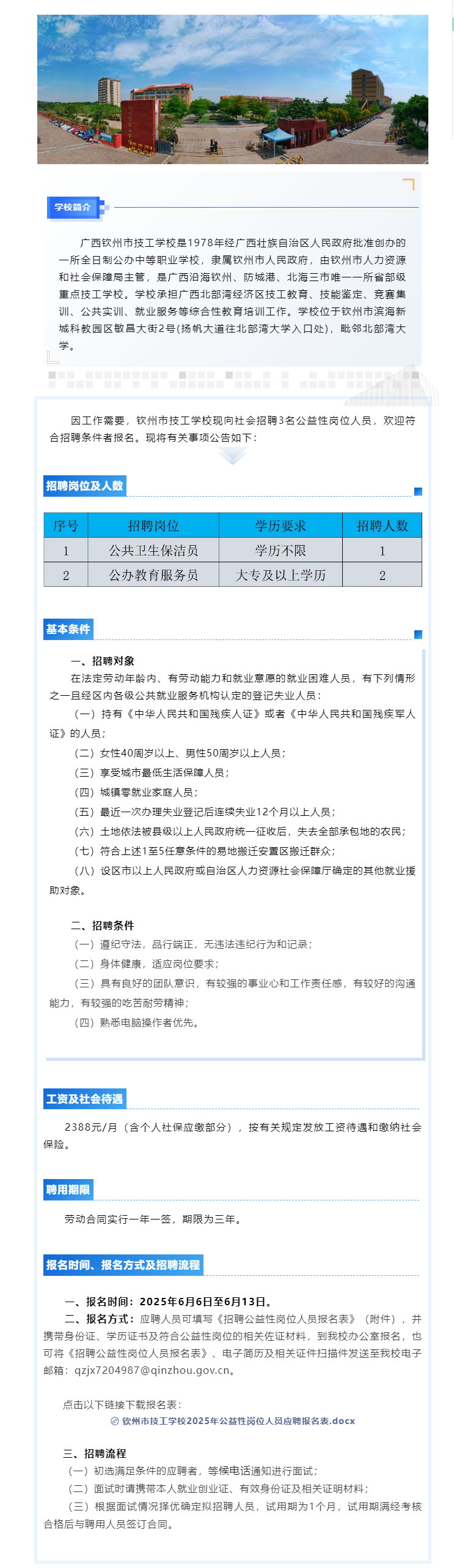 欽州市技工學(xué)校招聘公益性崗位人員公告