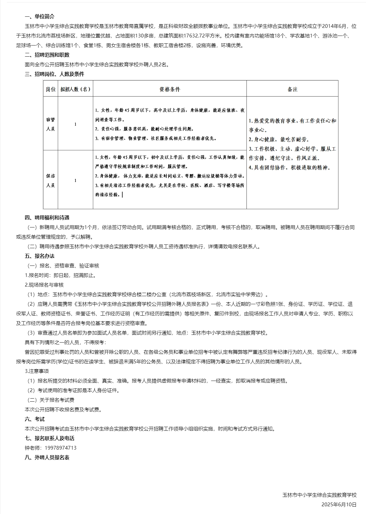 2025年玉林市中小學(xué)生綜合實踐教育學(xué)校公開招聘外聘人員公告(五)