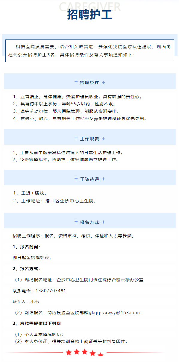 原文標(biāo)題:港口區(qū)企沙中心衛(wèi)生院招聘護(hù)工公告