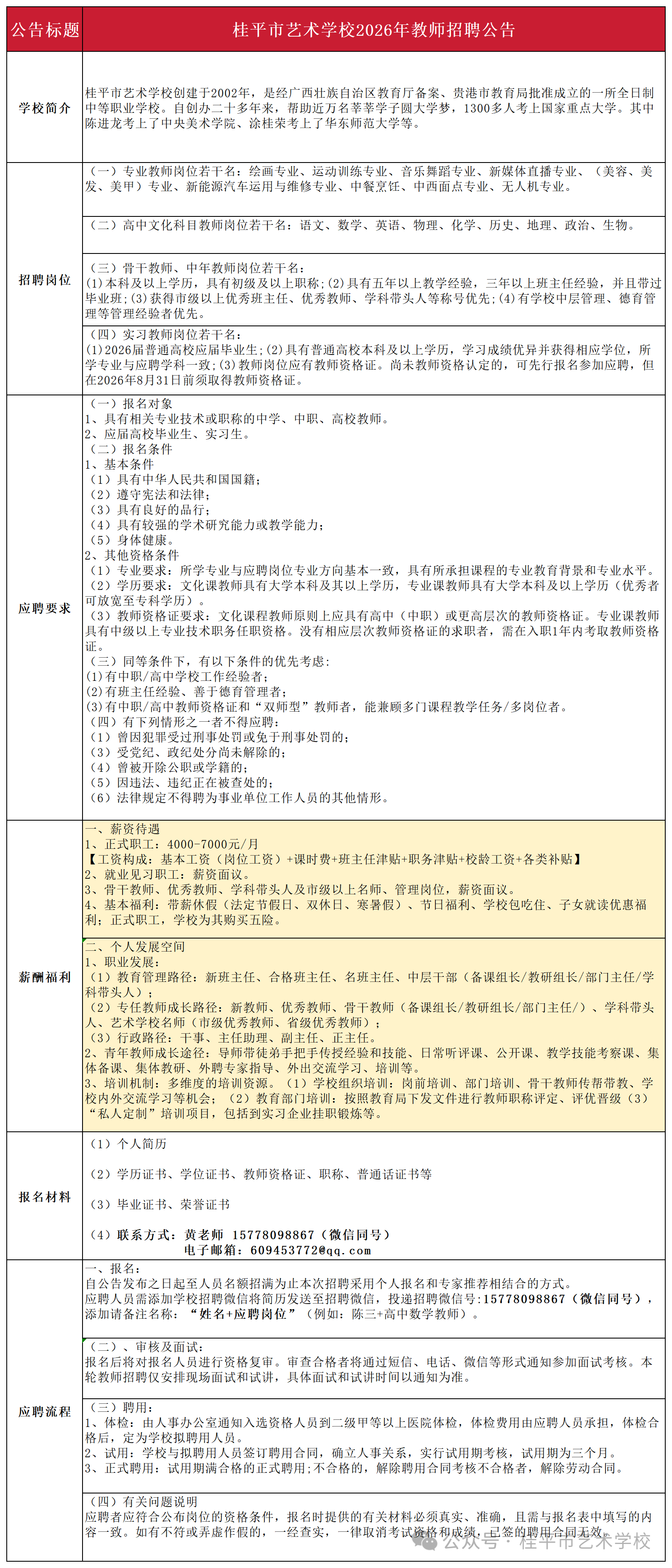 原文標(biāo)題:桂平市藝術(shù)學(xué)校2026年春季學(xué)期教師招聘公告