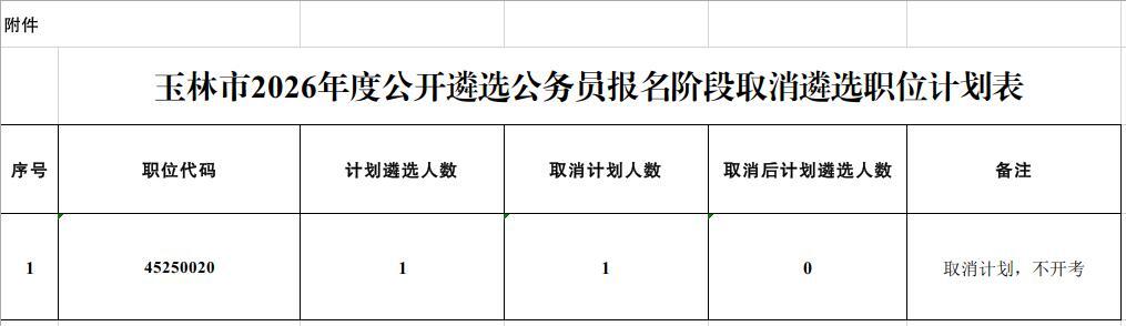 附件:玉林市2026年度公開(kāi)遴選公務(wù)員報(bào)名階段取消遴選職位計(jì)劃表