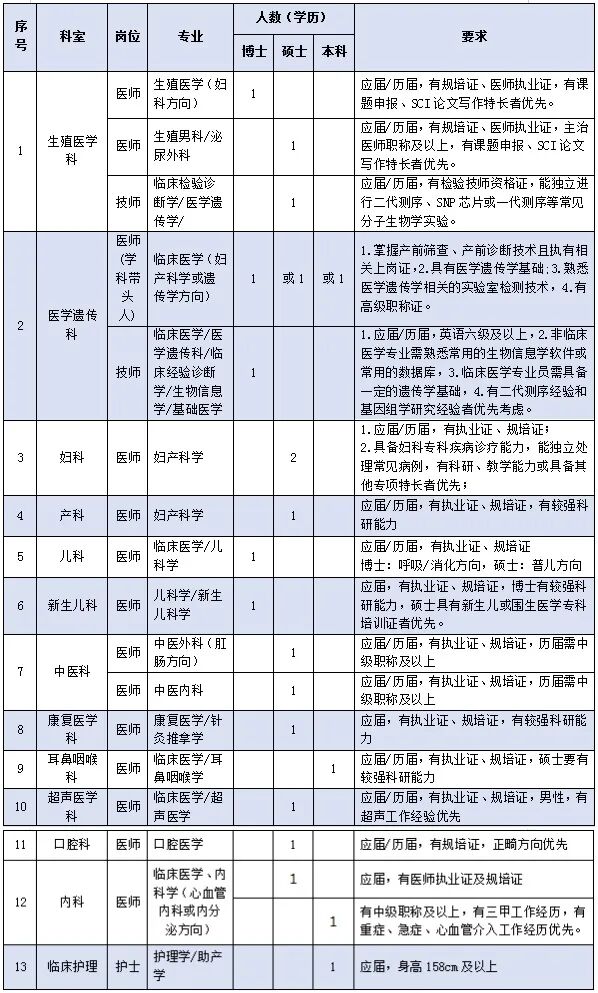 根據(jù)醫(yī)院整體發(fā)展規(guī)劃和學(xué)科建設(shè)需要,柳州市婦幼保健院面向社會公開招聘各學(xué)科相關(guān)專業(yè)技術(shù)人才,具體如下: