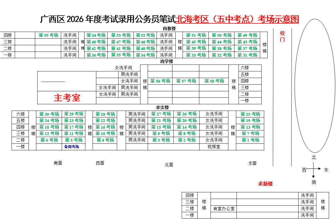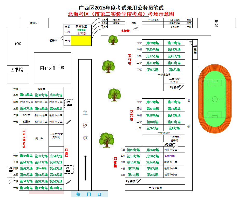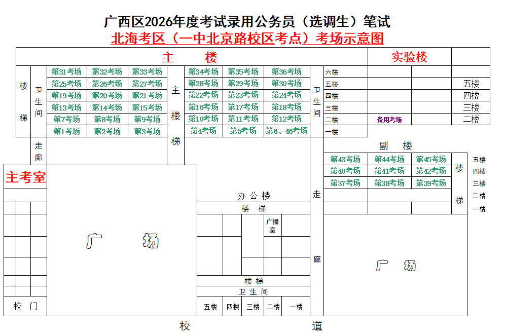 北海考區(qū)共設(shè)置6個(gè)考點(diǎn),具體考點(diǎn)考場(chǎng)布置分別如下: