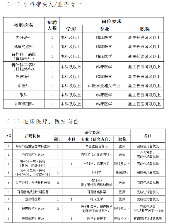 根據醫(yī)院發(fā)展需要,現(xiàn)面向社會招聘臨床崗位各層次人才,有關招聘事項公告如下:
