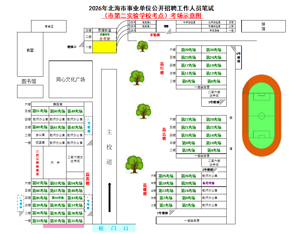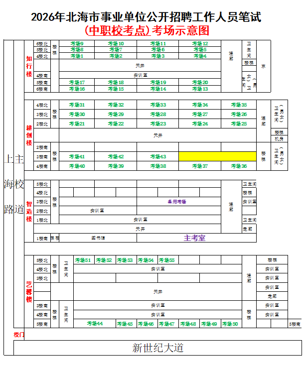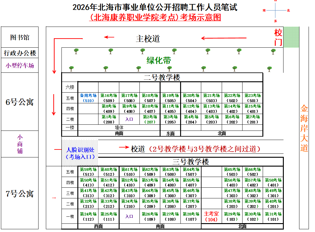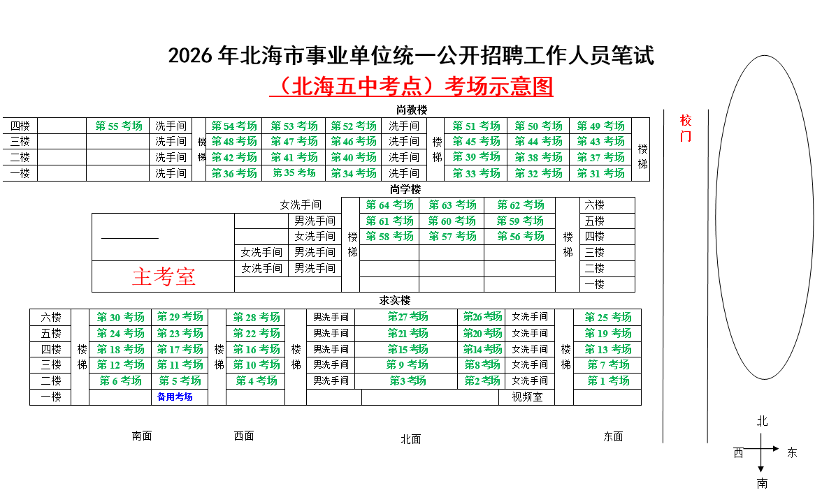 (一)3月28日進(jìn)行綜合管理類(A類)考試,北海市共設(shè)一個(gè)考點(diǎn),考點(diǎn)考場(chǎng)布置為: