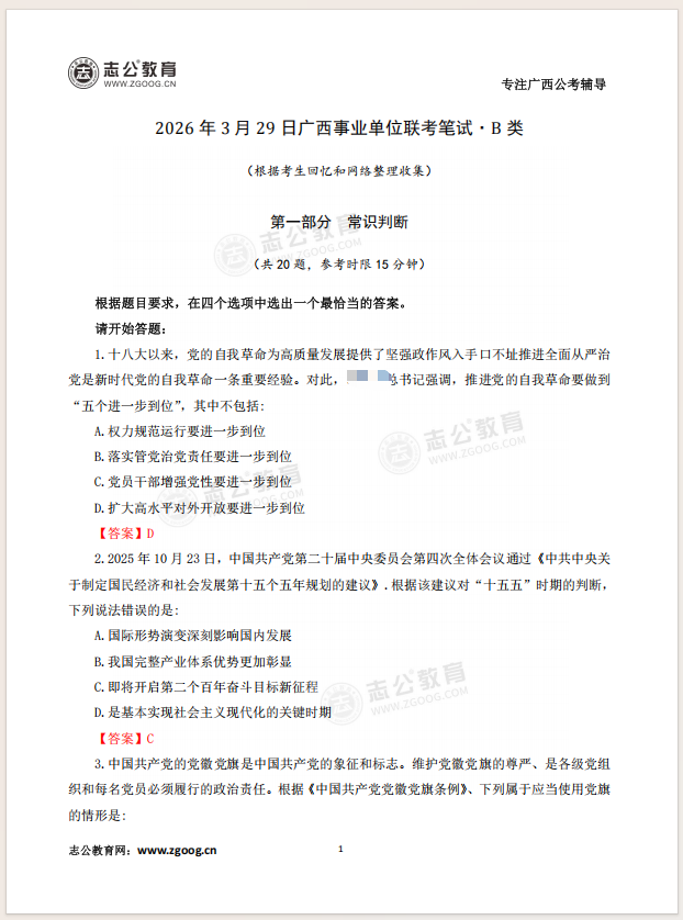 志公教育第一時(shí)間整理了考題及解析